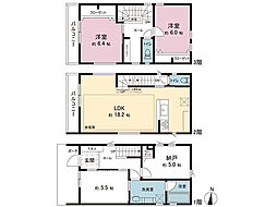 | 間取り | 2LDK 間取り内訳:リビングダイニングキッチン 17帖(1階)・洋室 10.2帖(2階)・洋室 8.5帖(2階) |