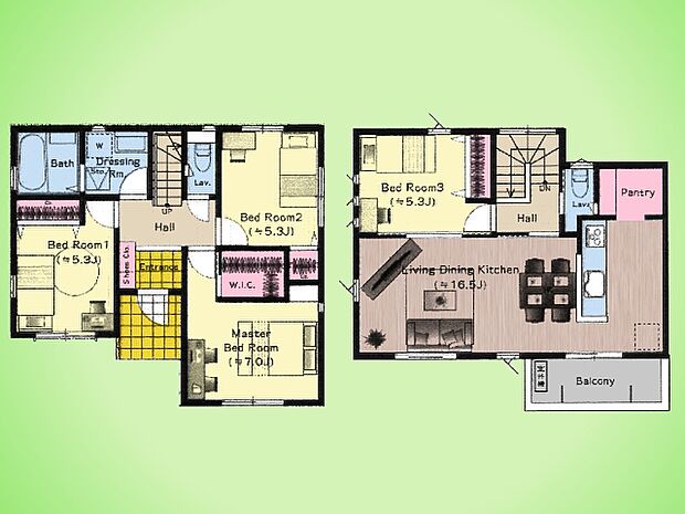 駐車スペースあり(車種による) 完成済みにつき内覧・即時引渡し可能 主寝室にはウォークインクローゼット付き 小学校が徒歩10分圏内にあり