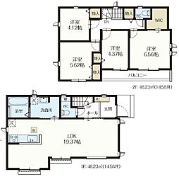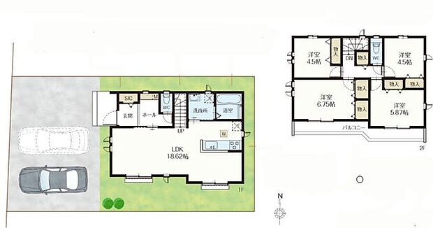 間取り内訳:リビングダイニングキッチン 18.6帖(1階)・洋室 4.5帖(2階)・洋室 6.7帖(2階)・洋室 5.8帖(2階)・洋室 4.5帖(2階)
