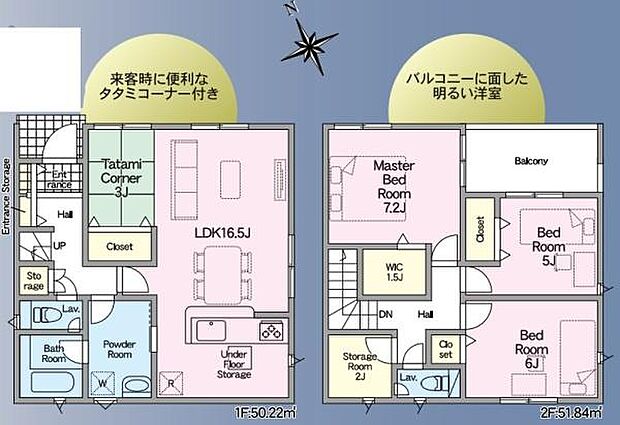 | 間取り | 4LDK 間取り内訳:リビングダイニングキッチン 16.5帖(1階)・洋室 7.2帖(2階)・洋室 6帖(2階)・洋室 5帖(2階)・和室 3畳(1階) |