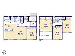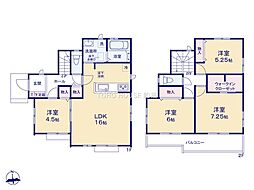 | 間取り | 4LDK 間取り内訳:リビングダイニングキッチン 17.3帖(1階)・洋室 5帖(1階)・洋室 14.2帖(2階)・洋室 6.7帖(2階)・洋室 5.2帖(2階) |
