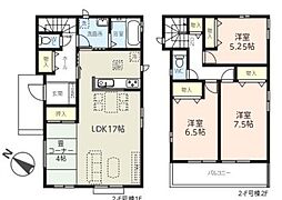 | 間取り | 4LDK 間取り内訳:リビングダイニングキッチン 17帖(1階)・和室 4.5畳(1階)・洋室 7.2帖(2階)・洋室 6.5帖(2階)・洋室 6.2帖(2階) |