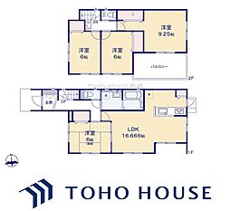 | 間取り | 3LDK 間取り内訳:リビングダイニングキッチン 20帖(1階)・洋室 8帖(2階)・洋室 6.2帖(2階)・洋室 6帖(2階) |