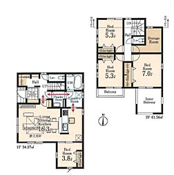 | 間取り | 4LDK 間取り内訳:リビングダイニングキッチン 16帖(1階)・洋室 4.4帖(1階)・洋室 6.1帖(2階)・洋室 7.5帖(2階)・洋室 6帖(2階) |