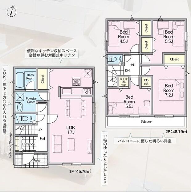 土地面積52坪超!カースペース並列2台有り!LDKは17帖!洗面室は2方向から出入りでき動線◎