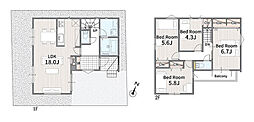 間取り内訳:リビングダイニングキッチン 16.1帖(1階)・収納(1階)・洋室 4.5帖(2階)・洋室 5帖(2階)・洋室 6.2帖(2階)・洋室 7.1帖(2階)