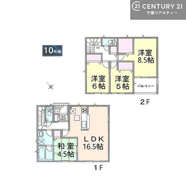 間取り内訳:リビングダイニングキッチン 16.5帖(1階)・和室 4.5畳(1階)・洋室 8.5帖(2階)・洋室 6帖(2階)・洋室 5帖(2階)