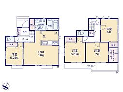 | 間取り | 4LDK 間取り内訳:リビングダイニングキッチン 16帖(1階)・和室 4.5畳(1階)・洋室 7.5帖(2階)・洋室 7帖(2階)・洋室 5.2帖(2階) |