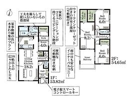 間取り内訳:リビングダイニングキッチン 18.2帖(1階)・和室 4畳(1階)・洋室 8.2帖(2階)・洋室 6帖(2階)x2