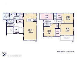 | 間取り | 3SLDK 間取り内訳:リビングダイニングキッチン 16帖(1階)・洋室 7.3帖(2階)・洋室 6帖(2階)・洋室 5.2帖(2階)・収納 4帖(2階) |