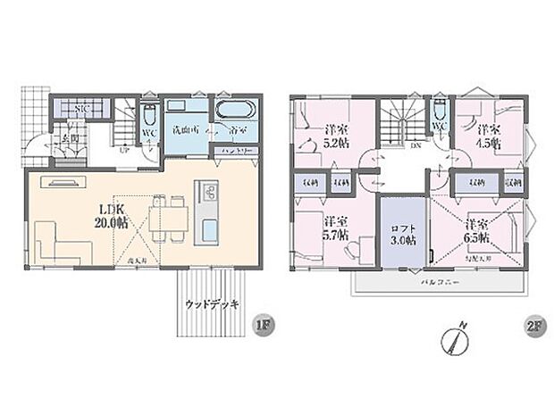| 間取り | 4LDK 間取り内訳:リビングダイニングキッチン 20帖・洋室 4.5帖・洋室 5.2帖・洋室 5.7帖・洋室 6.5帖 |