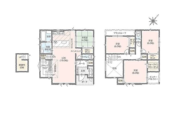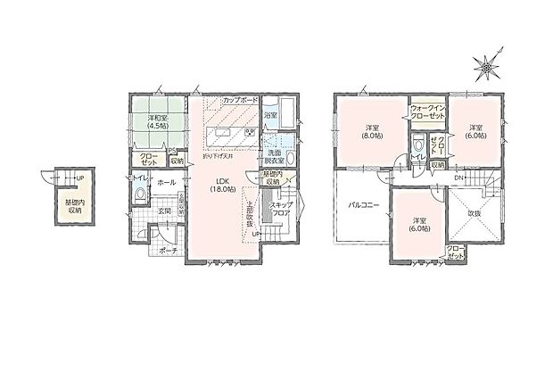 SIC・WIC・基礎内収納など豊富な収納で荷物が増えがちな子育て家族を応援 リビングで遊ぶお子さんを見守りながらテレワークもできる「スキップフロア」 家族と会話しながらお料理ができるペニンシュラタイプの対面式キッチン・食器洗い乾燥機などうれしい設備が充実!