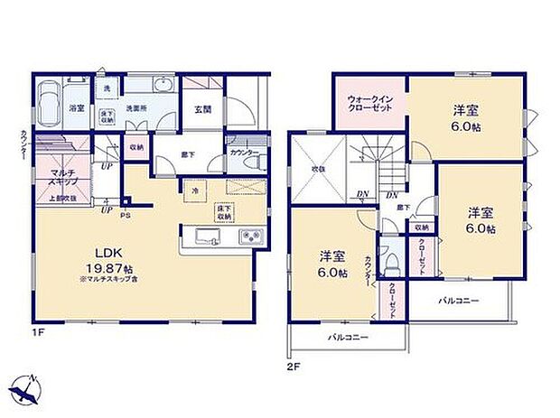 | 間取り | 3LDK | 建物階 | 木造サイディングアスファルトシングル葺2階建 |