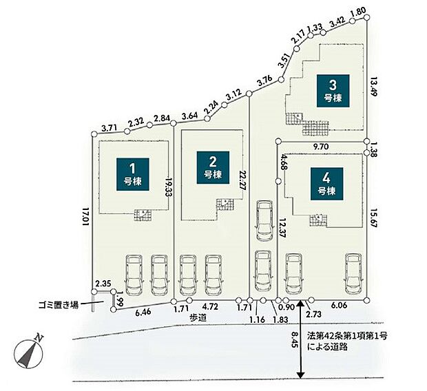 2号棟:南東5.9m /4号棟:南東5.9m /1号棟:南東5.9m /3号棟:南東5.9m