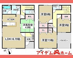 間取り内訳:リビングダイニングキッチン 18帖(1階)・洋室 6.5帖(2階)・洋室 5.2帖(2階)x2・洋室 4.5帖(2階)