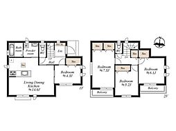 • 「建築条件付き土地」の「建物プラン例」は、土地購入者の設計プランの一例であり、プランの採用可否は任意です。