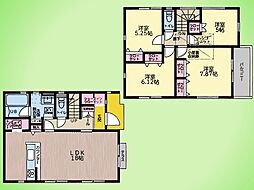 | 間取り | 4LDK(ウォークインクローゼット、パントリー) 間取り内訳:リビングダイニングキッチン 22帖(1階)・洋室 3.7帖(2階)・洋室 5帖(2階)・洋室 6帖(2階)・洋室 6.1帖(2階) |
