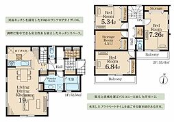 | 間取り | 3LDK 間取り内訳:リビングダイニングキッチン 17帖(1階)・洋室 5.2帖(2階)・洋室 5.2帖(2階)・洋室 10.2帖(2階) |
