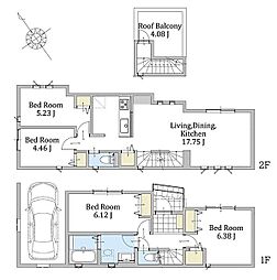 | 間取り | 4LDK 間取り内訳:リビングダイニングキッチン 19.2帖(1階)・洋室 7.3帖(2階)・洋室 6帖(2階)・洋室 5.2帖(2階)x2 |
