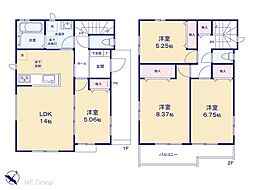 | 間取り | 4LDK 間取り内訳:リビングダイニングキッチン 14帖(1階)・洋室 5帖(1階)・洋室 8.3帖(2階)・洋室 6.7帖(2階)・洋室 5.2帖(2階) |