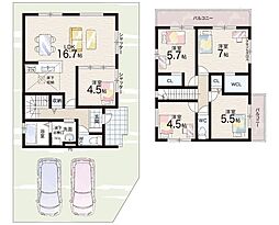 | 間取り | 3SLDK 間取り内訳:リビングダイニングキッチン 18.1帖(1階)・洋室 7.2帖(2階)・洋室 5.2帖(2階)・洋室 4.4帖(2階)・収納 5.2帖(2階) |