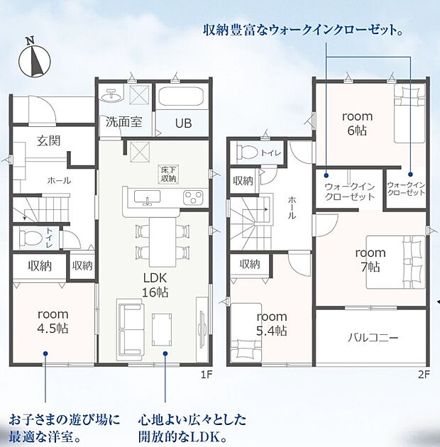 • 「建築条件付き土地」の「建物プラン例」は、土地購入者の設計プランの一例であり、プランの採用可否は任意です。