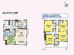 | 間取り | 4LDK 間取り内訳:リビングダイニングキッチン 16帖(1階)・洋室 4.5帖(1階)・洋室 8帖(2階)・洋室 6帖(2階)・洋室 5.2帖(2階) |