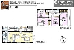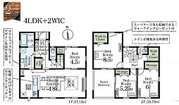 | 間取り | 4LDK 間取り内訳:リビングダイニングキッチン 18帖(1階)・洋室 4.5帖(1階)・洋室 8.5帖(2階)・洋室 6帖(2階)・洋室 5.2帖(2階) |
