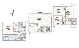 | 間取り | 4SLDK 間取り内訳:リビングダイニングキッチン 16帖(1階)・和室 4.5畳(1階)・洋室 8帖(2階)・洋室 5.2帖(2階)x2 |