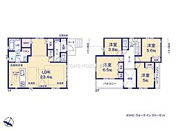 | 間取り | 4LDK 間取り内訳:リビングダイニングキッチン 16帖(1階)・洋室 5.2帖(2階)x2・洋室 4.5帖(2階)・洋室 8.2帖(2階) |