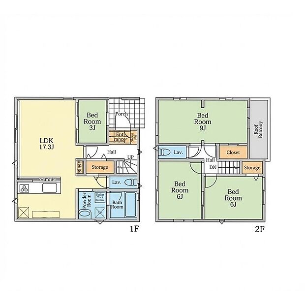 間取り内訳:リビングダイニングキッチン 17.3帖・洋室 3帖・洋室 6帖・洋室 6帖・洋室 9帖
