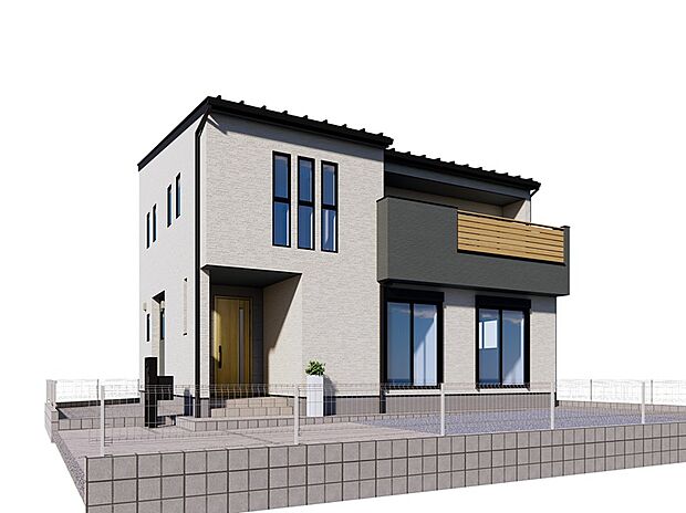 • 【【2号棟 完成イメージ】】落ち着いた色でまとめた、シンプルで長く住んでも飽きのこない外観デザインとなっております。