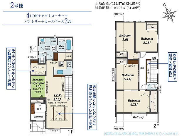 土地面積 114.10m2(約34.51坪)~114.57m2(約34.65坪)