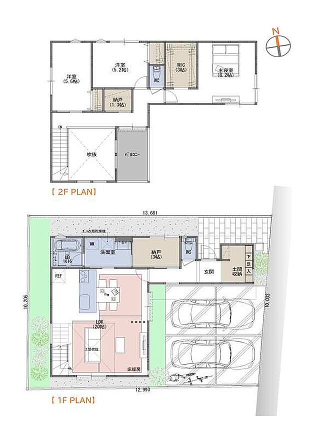 間取り 3LDK +2S+WIC + 土間収納 建物階 木造2階建