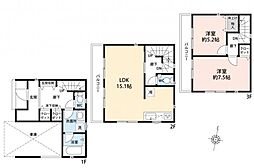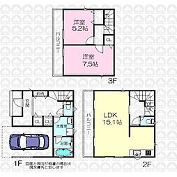 間取り内訳:リビングダイニングキッチン 15.1帖(2階)・洋室 7.5帖(3階)・洋室 5.2帖(3階)