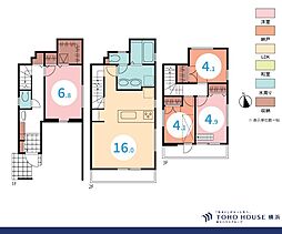 | 間取り | 3SLDK 間取り内訳:リビングダイニングキッチン 17.7帖(2階)・洋室 6.1帖(3階)・洋室 6.3帖(3階)・洋室 4.5帖(3階)・収納 4.9帖(1階) |
