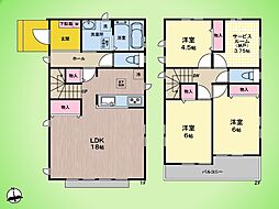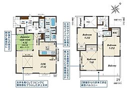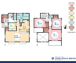 | 間取り | 4LDK 間取り内訳:洋室 6.8帖(1階)・洋室 6帖(1階)・洋室 5.2帖(1階)・リビングダイニングキッチン 17.5帖(2階)・洋室 5.2帖(2階) |
