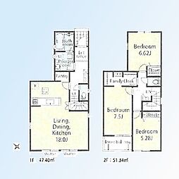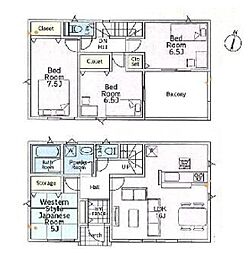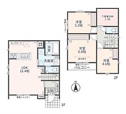 | 間取り | 4LDK 間取り内訳:リビングダイニングキッチン 20.2帖(1階)・洋室 5.7帖(2階)・洋室 7.2帖(2階)・洋室 5.2帖(2階)・洋室 5.2帖(2階) |