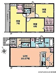 | 間取り | 4LDK 間取り内訳:リビングダイニングキッチン 16帖(1階)・和室 5畳(1階)・洋室 7.5帖(2階)・洋室 6.5帖(2階)・洋室 5帖(2階) |