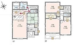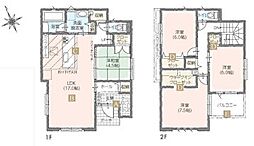 間取り内訳:リビングダイニングキッチン 21.5帖(1階)・洋室 7.4帖(2階)・洋室 5.2帖(2階)・洋室 5.2帖(2階)・洋室 4.8帖(2階)