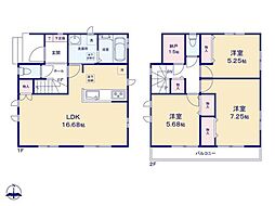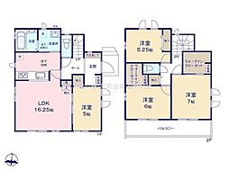 間取り内訳:リビングダイニングキッチン 16.2帖(1階)・洋室 5帖(1階)・洋室 7帖(2階)・洋室 6帖(2階)・洋室 5.2帖(2階)