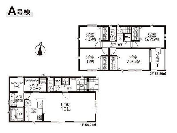 | 間取り | 4LDK 間取り内訳:リビングダイニングキッチン 19帖(1階)・洋室 7.2帖(2階)・洋室 5.7帖(2階)・洋室 5帖(2階)・洋室 4.5帖(2階) |