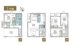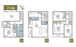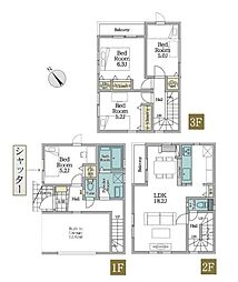 | 間取り | 4LDK 間取り内訳:洋室 5.2帖(1階)・リビングダイニングキッチン 18.2帖(2階)・洋室 6.3帖(3階)・洋室 5.2帖(3階)・洋室 5帖(3階) |