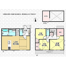 | 間取り | 3LDK 間取り内訳:リビングダイニングキッチン 17帖(1階)・洋室 6帖(2階)・洋室 5.3帖(2階)・洋室 4.5帖(2階) |