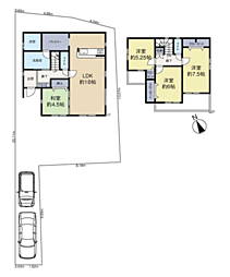| 間取り | 4SLDK 間取り内訳:リビングダイニングキッチン 18.5帖(1階)・収納(1階)・洋室 7帖(2階)・洋室 6.2帖(2階)・洋室 4.9帖(2階)・洋室 4.5帖(2階) |