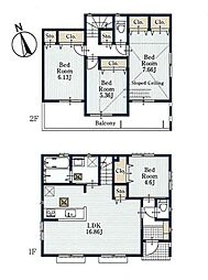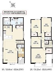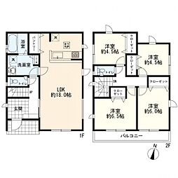 | 間取り | 4LDK 間取り内訳:リビングダイニングキッチン 17.1帖(1階)・和室 4.5畳(1階)・洋室 7帖(2階)・洋室 5.2帖(2階)・洋室 5.2帖(2階) |
