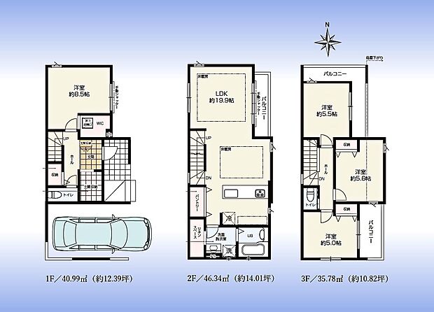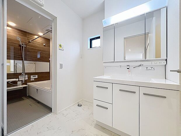 駅近「与野本町」駅徒歩5分または「与野」駅徒歩15分。角地の邸宅。LDK19帖で床暖房完備。カースペース2台可(車種による)。小・中学校まで徒歩10分圏。水廻りワンフロアで家事ラクプラン。