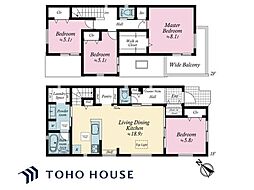 | 間取り | 4LDK 間取り内訳:リビングダイニングキッチン 18.9帖(1階)・洋室 5.8帖(1階)・洋室 8.1帖(2階)・洋室 5.1帖(2階)・洋室 5.1帖(2階) |
