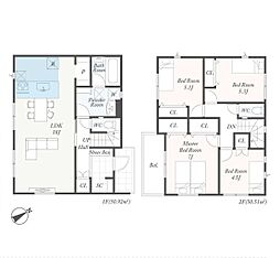 | 間取り | 4LDK 間取り内訳:リビングダイニングキッチン 20帖(1階)・洋室 5帖(2階)・洋室 5.2帖(2階)・洋室 5.2帖(2階)・洋室 7帖(2階) |