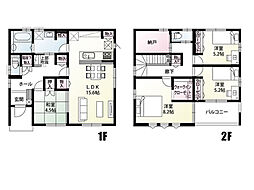 | 間取り | 4SLDK 間取り内訳:リビングダイニングキッチン 15.6帖(1階)・和室 4.5畳(1階)・洋室 8.2帖(2階)・洋室 5.2帖(2階)x2・収納(2階) |